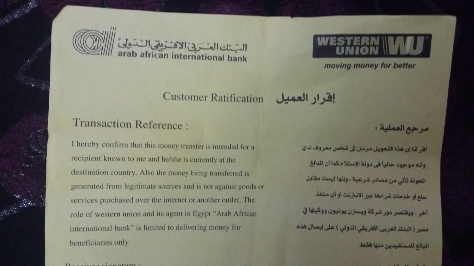 ايصال تحويل ويسترن يونيون مصر